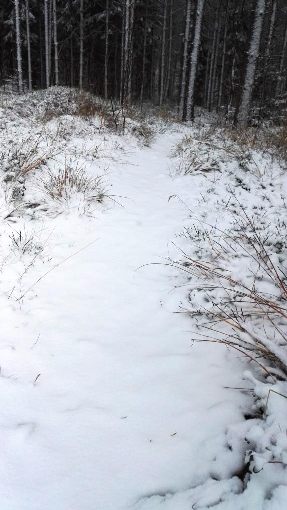 No sehän sitten satoi: ensilumi. Tiistai-keskiviikon välisenä yönä. Pari senttiä.